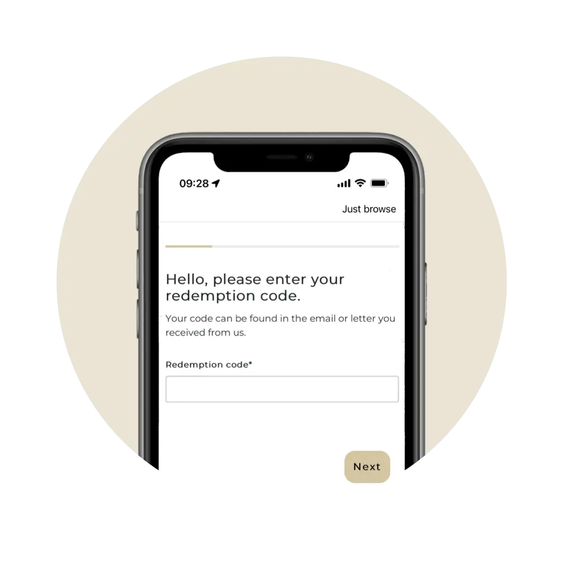 Download the app and redeem your membership by clicking on the black 'Register' button on the app home screen.